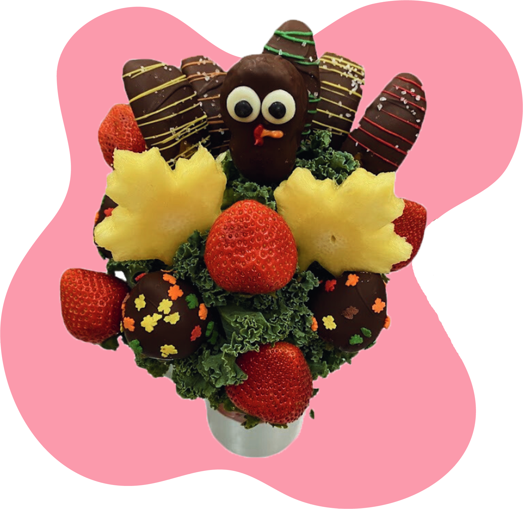 We aren't part of any franchise; we're a local business. That means we can provide you with personal service and creative customization. Our customized Chocolate Dipped Fruit Arrangements can put a smile on anyone's face. Visit our store to pick up your order or grab one of our pre-assembled boxes.