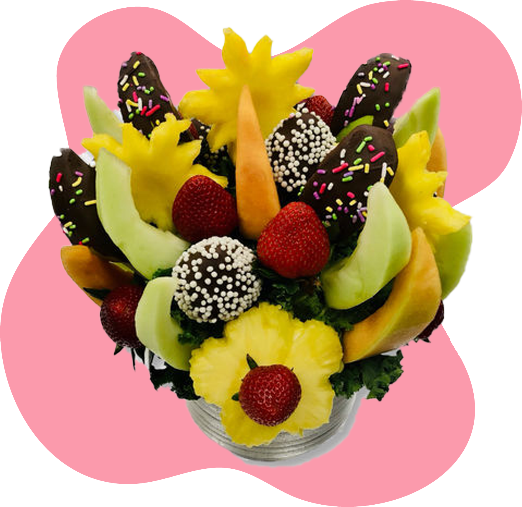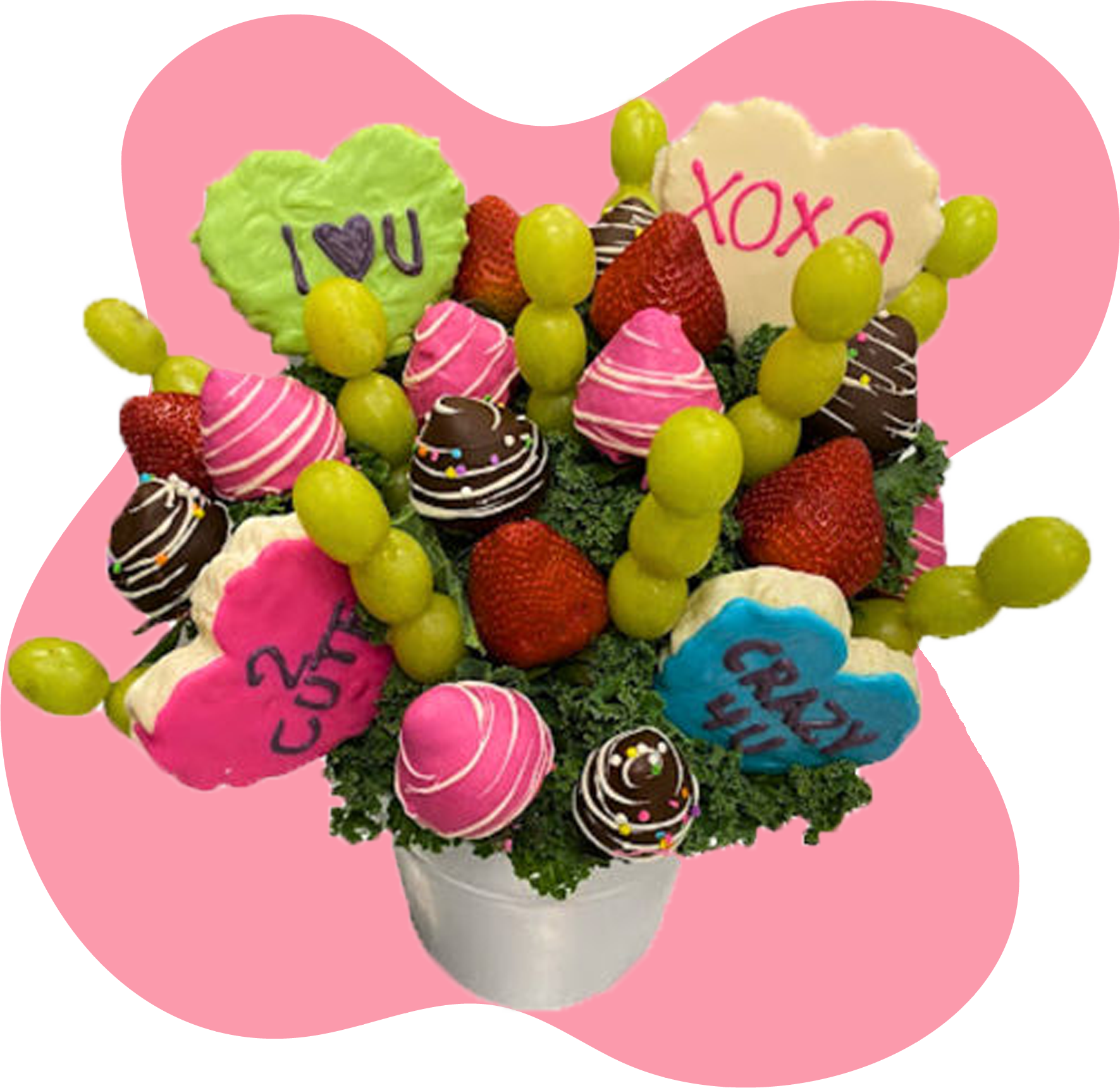 We aren't part of any franchise; we're a local business. That means we can provide you with personal service and creative customization. Our customized Chocolate Dipped Fruit Arrangements can put a smile on anyone's face. Visit our store to pick up your order or grab one of our pre-assembled boxes.